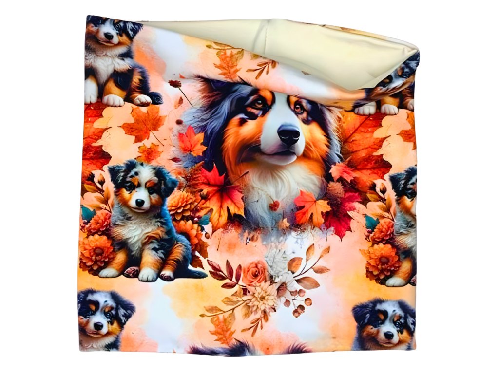 Čepice homeless (s přepadem) a nákrčník - Australský ovčák - Australský ovčák - bavlněná krémová podšívka