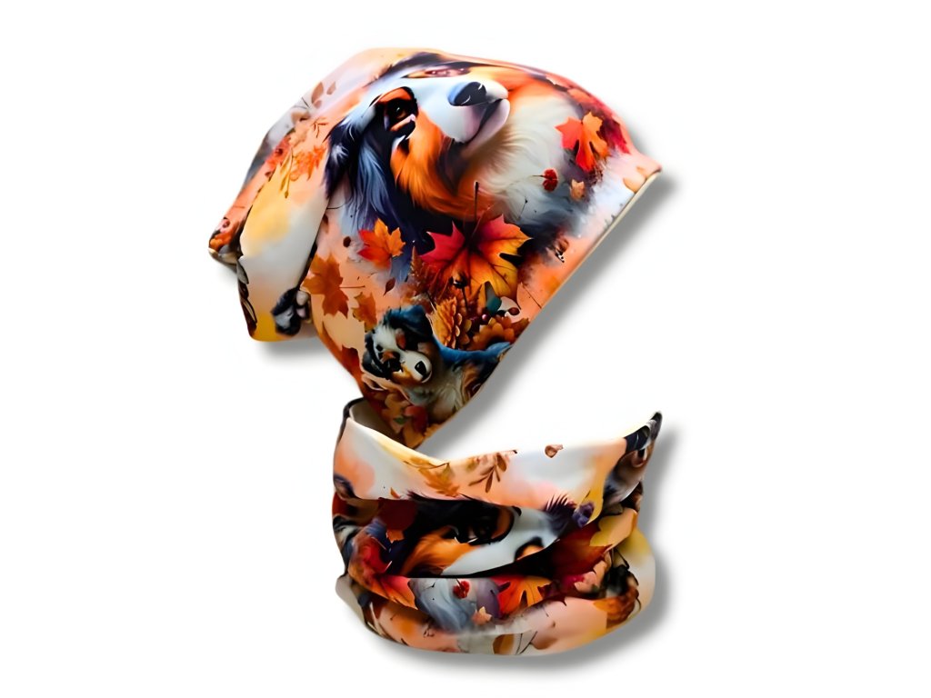 🐾 Set s australským ovčákem – dlouhá čepice s přepadlým střihem + nákrčník v bavlněném provedení.