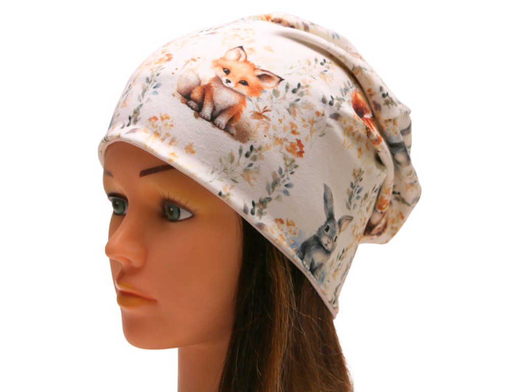 Čepice homeless (s přepadem) + nákrčník - LISTOPADOVÉ LESÍKY - bavlněná krémová podšívka