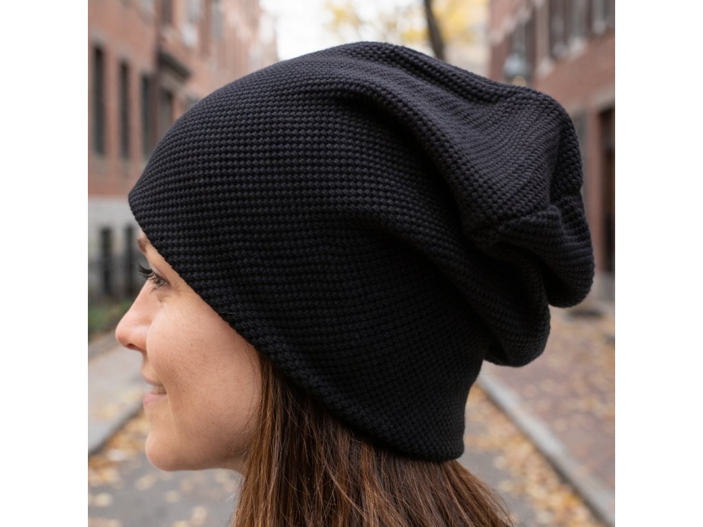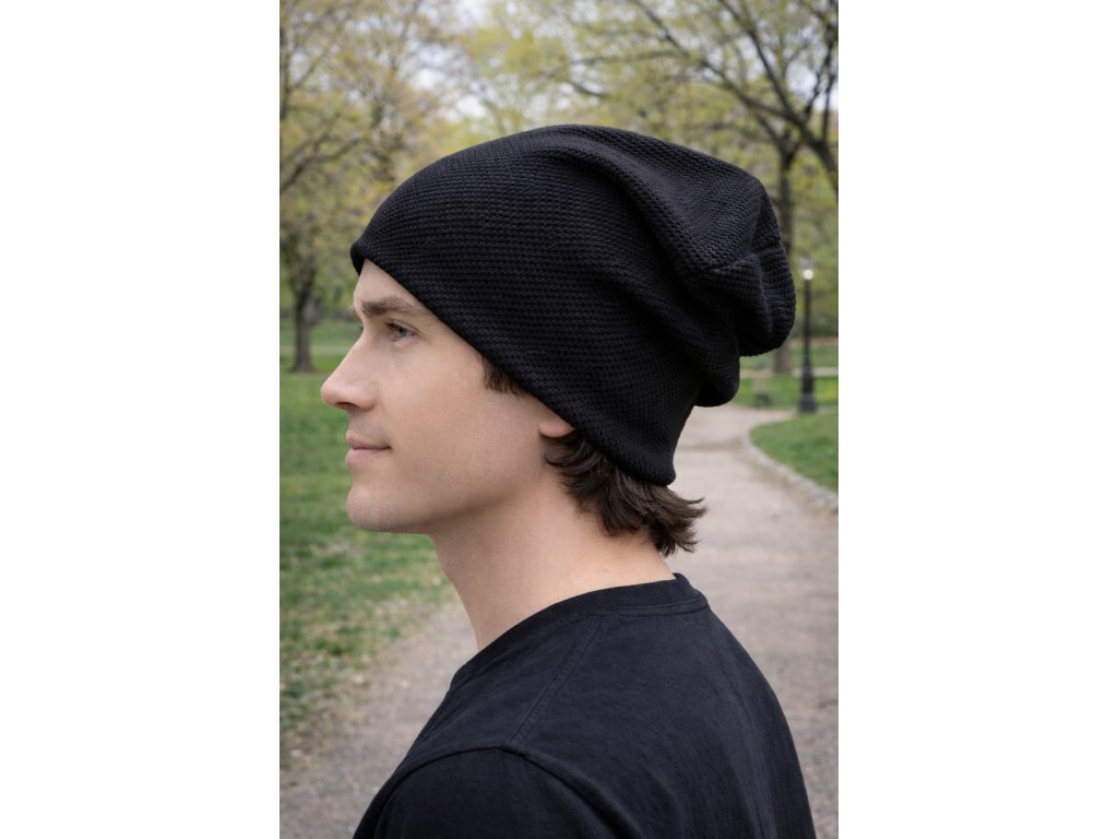 Čepice homeless (s přepadem) - Černá - 3D pletenina