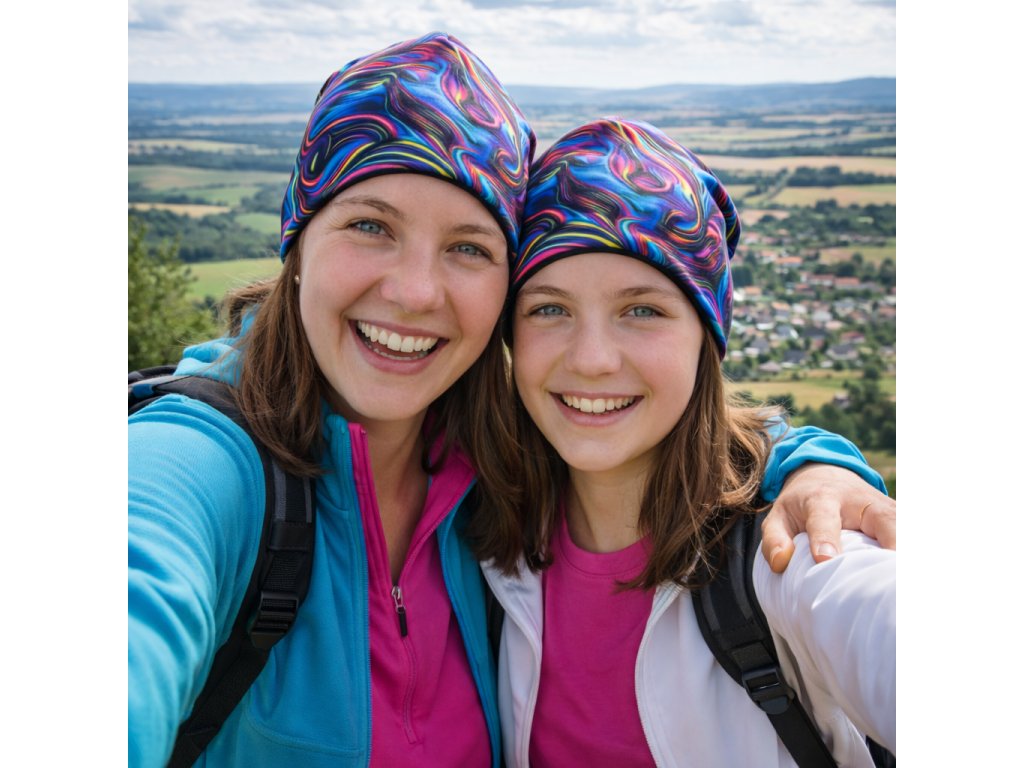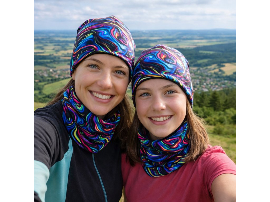 🌈 Set s dlouhou čepicí a nákrčníkem v neonovém stylu.
