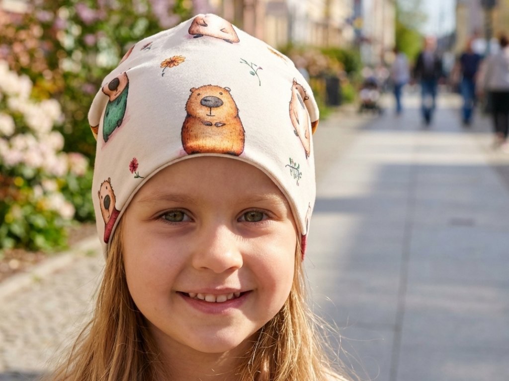 Krátká čepice s kapybarami – pohodlí, originalita a úsměv v jednom. Ruční výroba z naší české dílny.