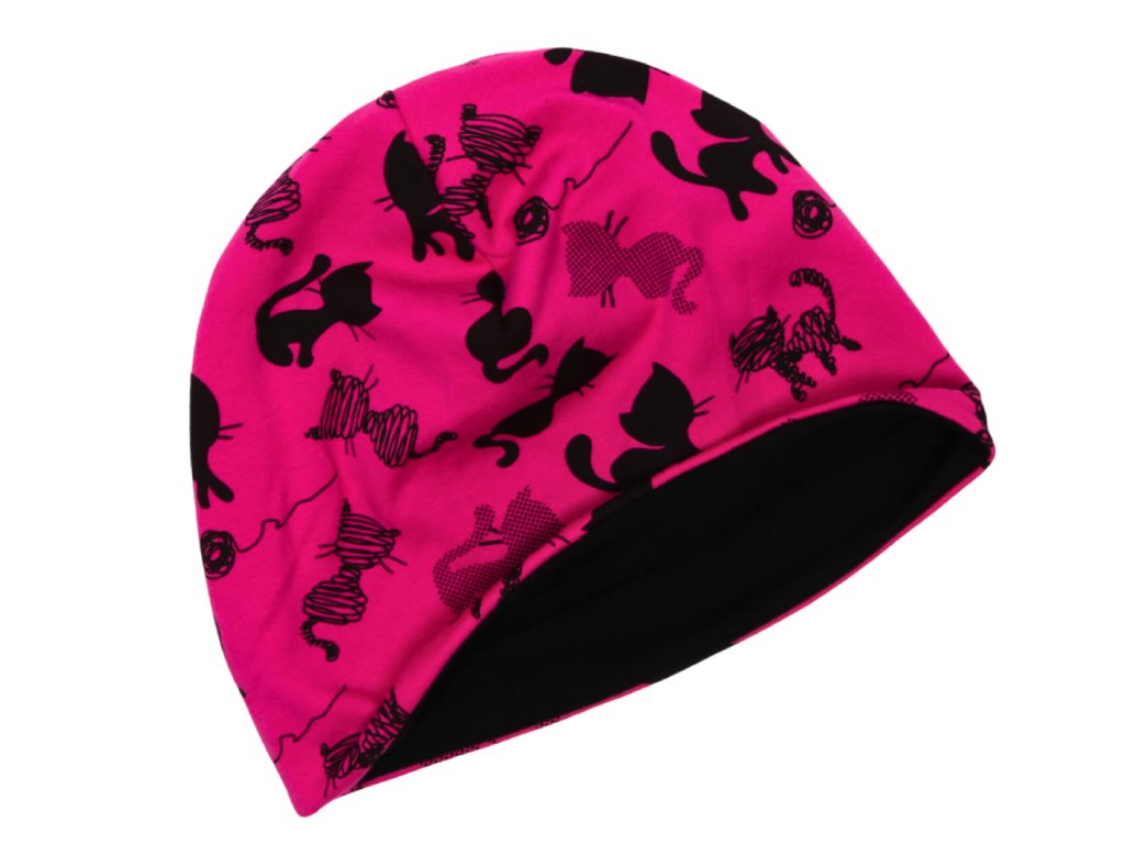 Čepice - KOČIČKY NA RŮŽOVÉ - bavlněná černá podšívka
