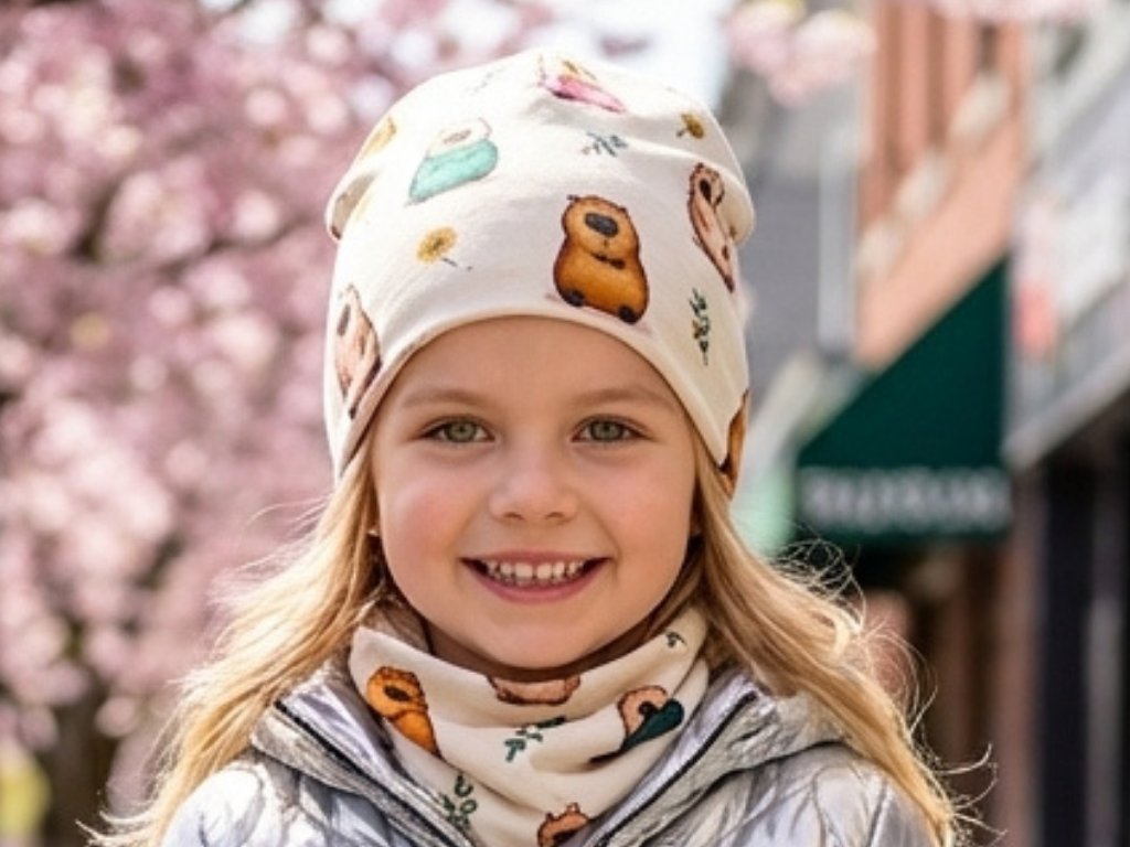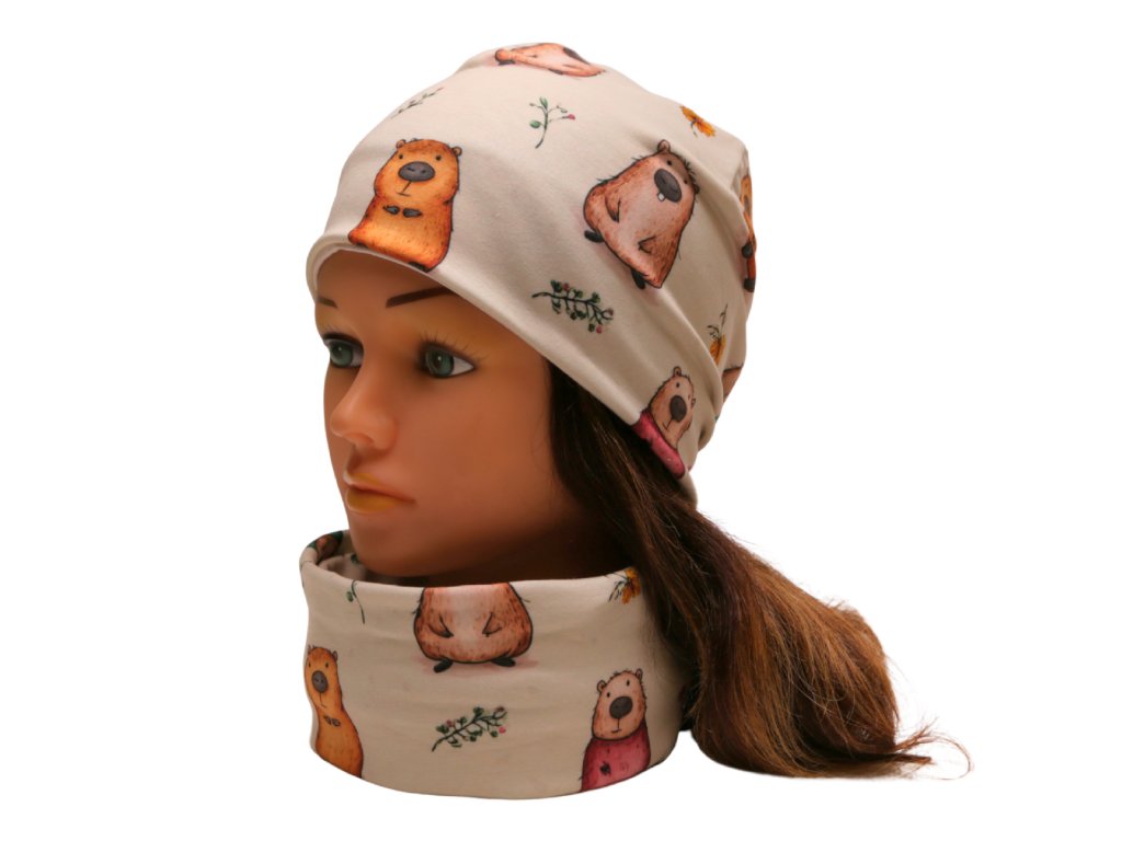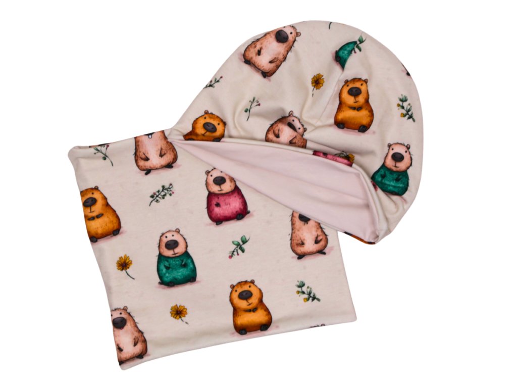 Roztomilý set krátké čepice a nákrčníku s motivem kapybar 🦦