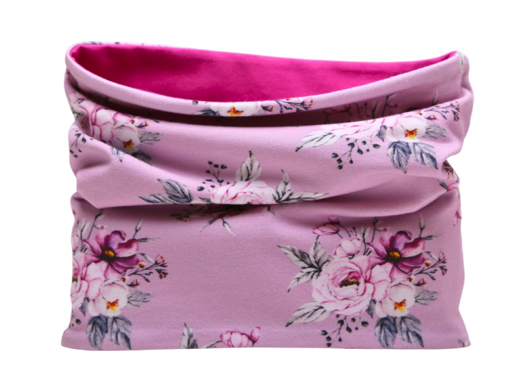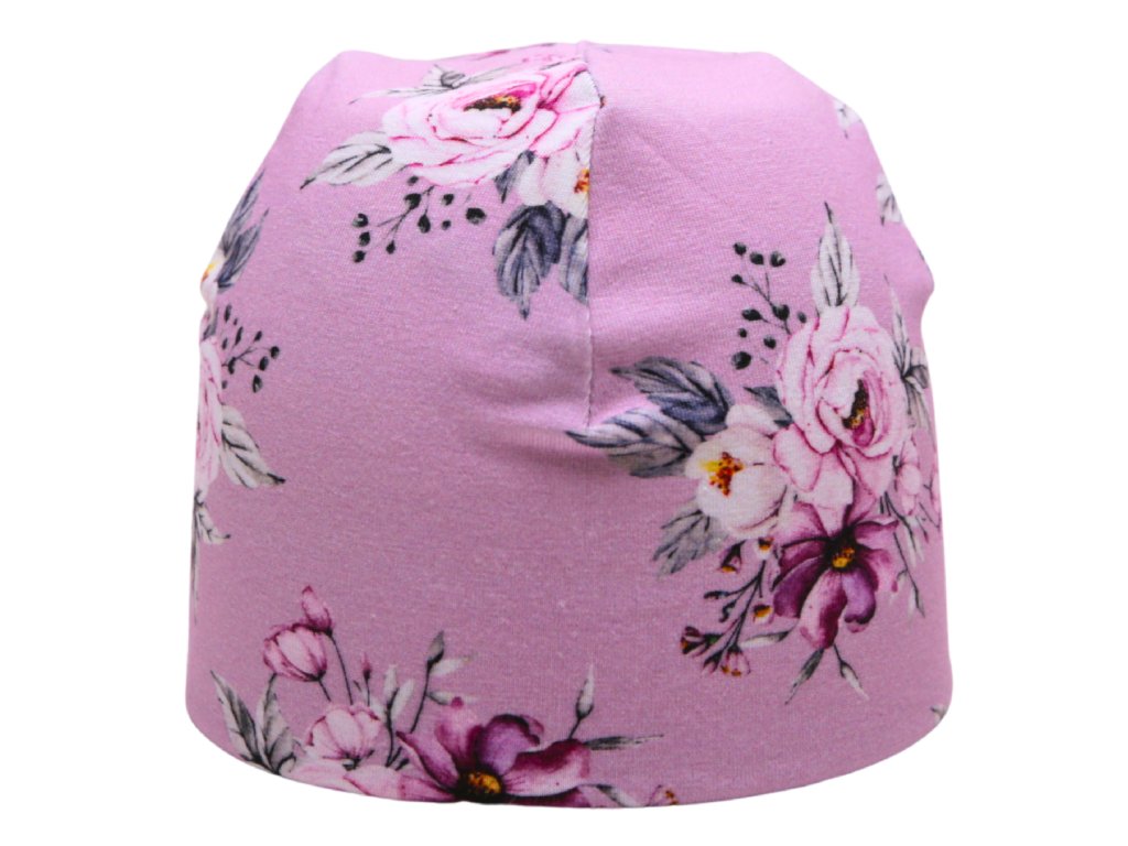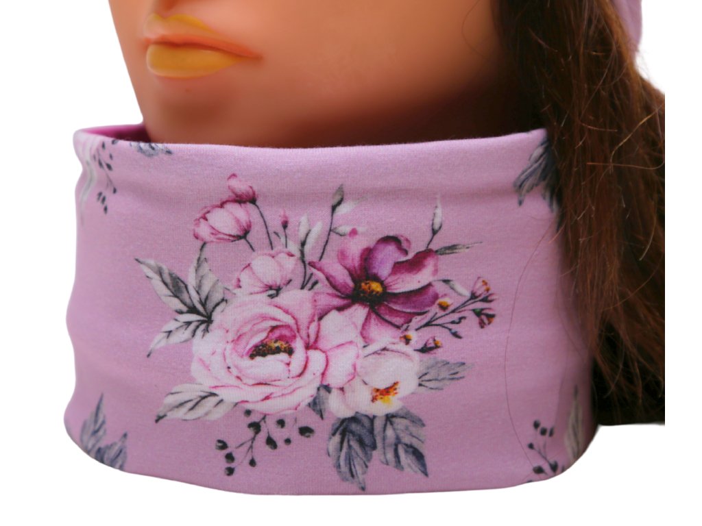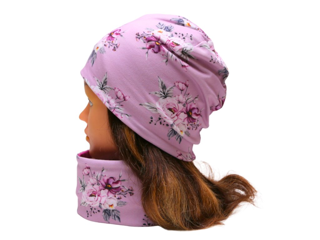 Stylový set s krátkou čepicí a nákrčníkem v jemném květinovém designu.