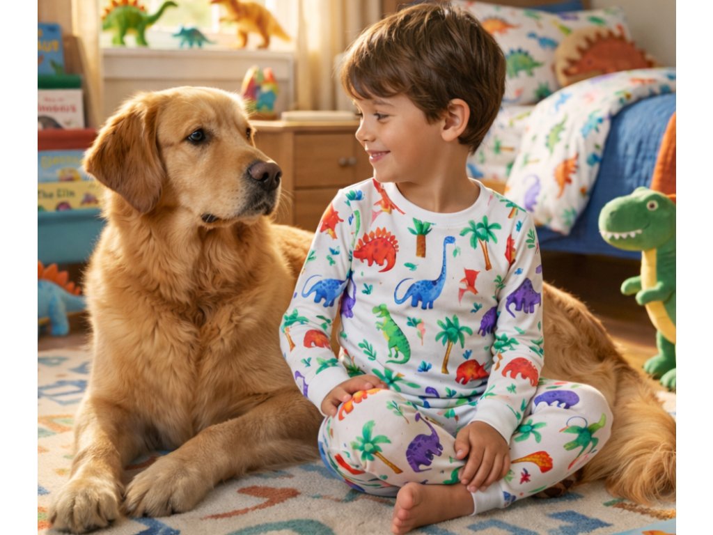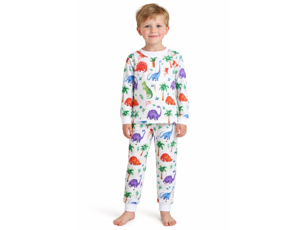 Dětské pyžamo z příjemného bavlněného úpletu v oblíbeném motivu dinosaurů si děti zamilují nejen pro hravý design, ale i pro svou výjimečnou hebkost.