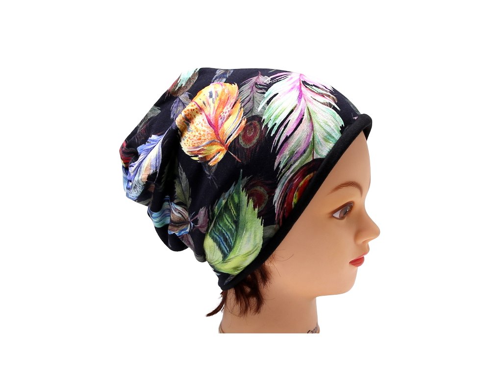 Jednovrstvá čepice homeless (s přepadem) - PAVÍ PEŘÍ
