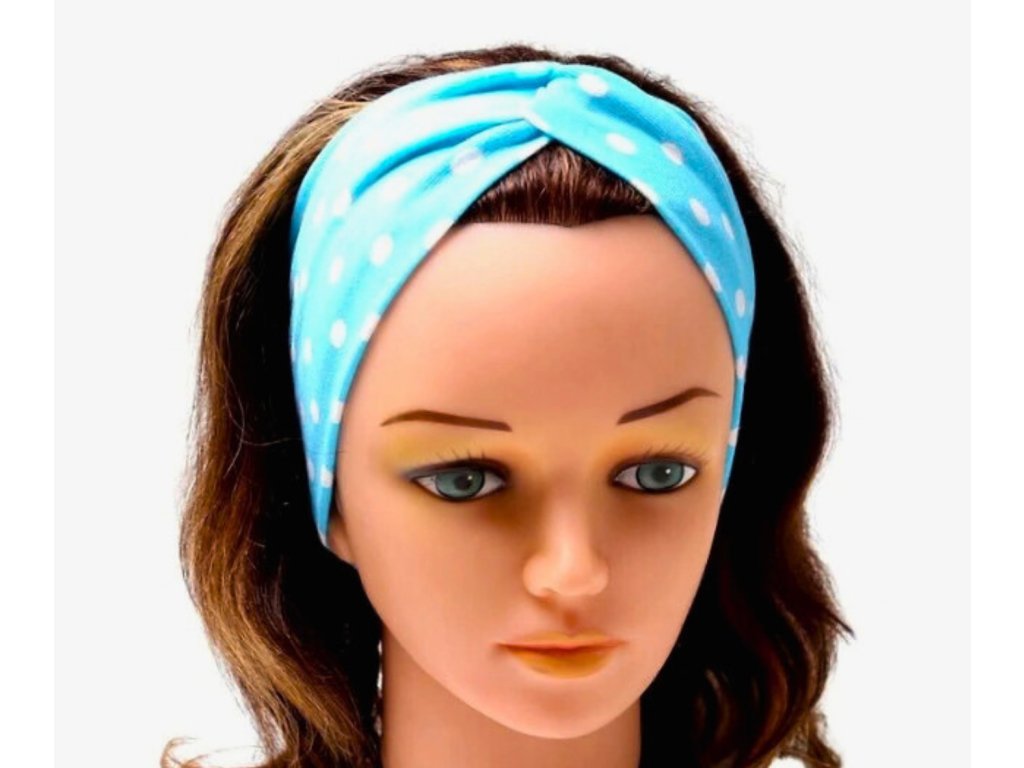 PŘEKŘÍŽENÁ ČELENKA - BÍLÝ PUNTÍK NA TYRKYSOVÉ