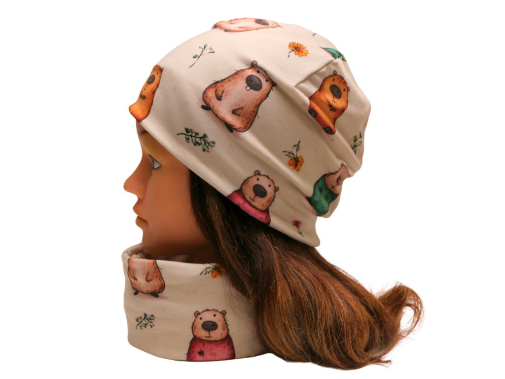 VEĽKOSŤ NÁKRČNÍKA JE V SETE VŽDY PRISPÔSOBENÁ VEĽKOSTI OBJEDNANEJ ČIAPKY.