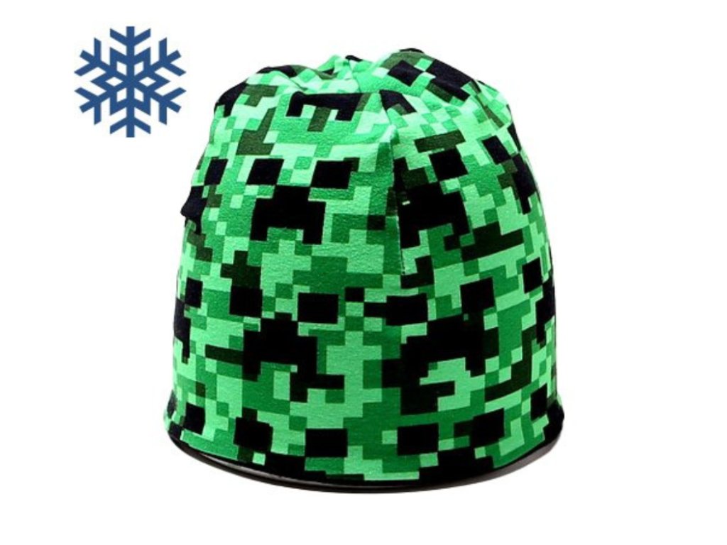 ZIMNÁ ČIAPKA - PIXELS - fleecová čierna podšívka