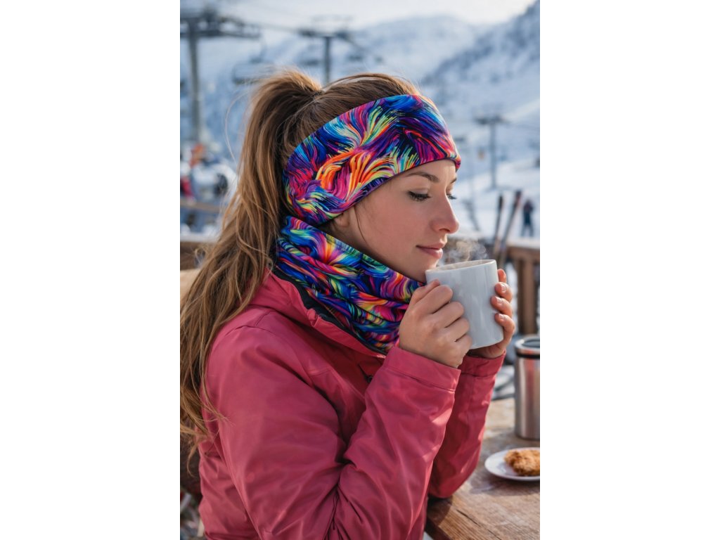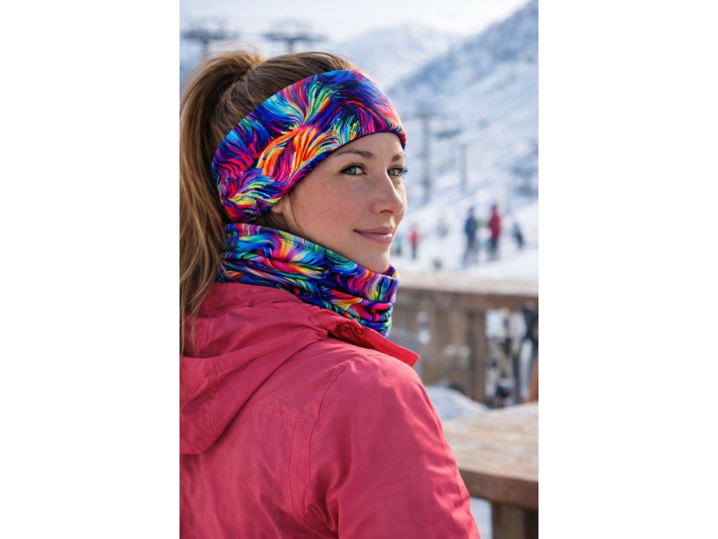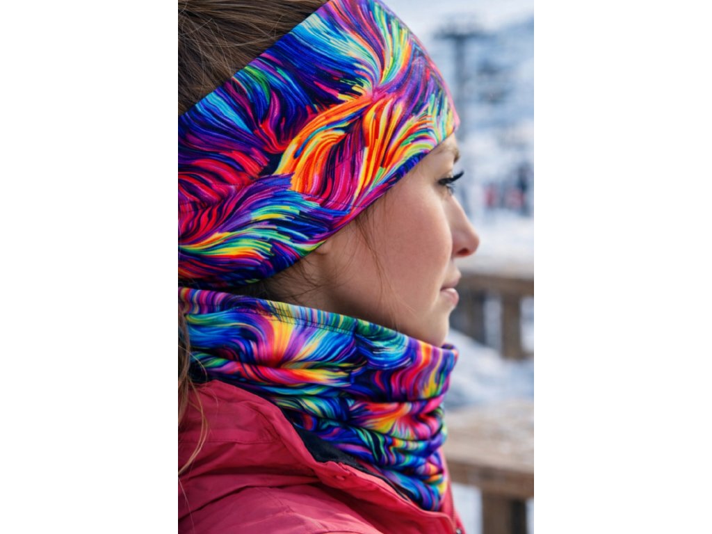 Zimní čelenka a nákrčník DUHOVÉ MANDALY
