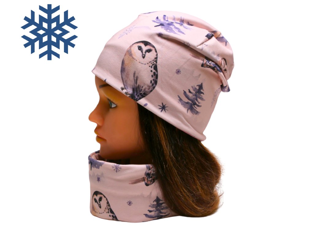 ZIMNÍ ČEPICE + NÁKRČNÍK - NEON PUNTÍK - fleecová růžová podšívka