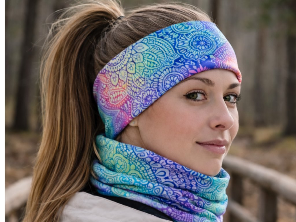 Sportovní čelenka a nákrčník – Duhové mandaly