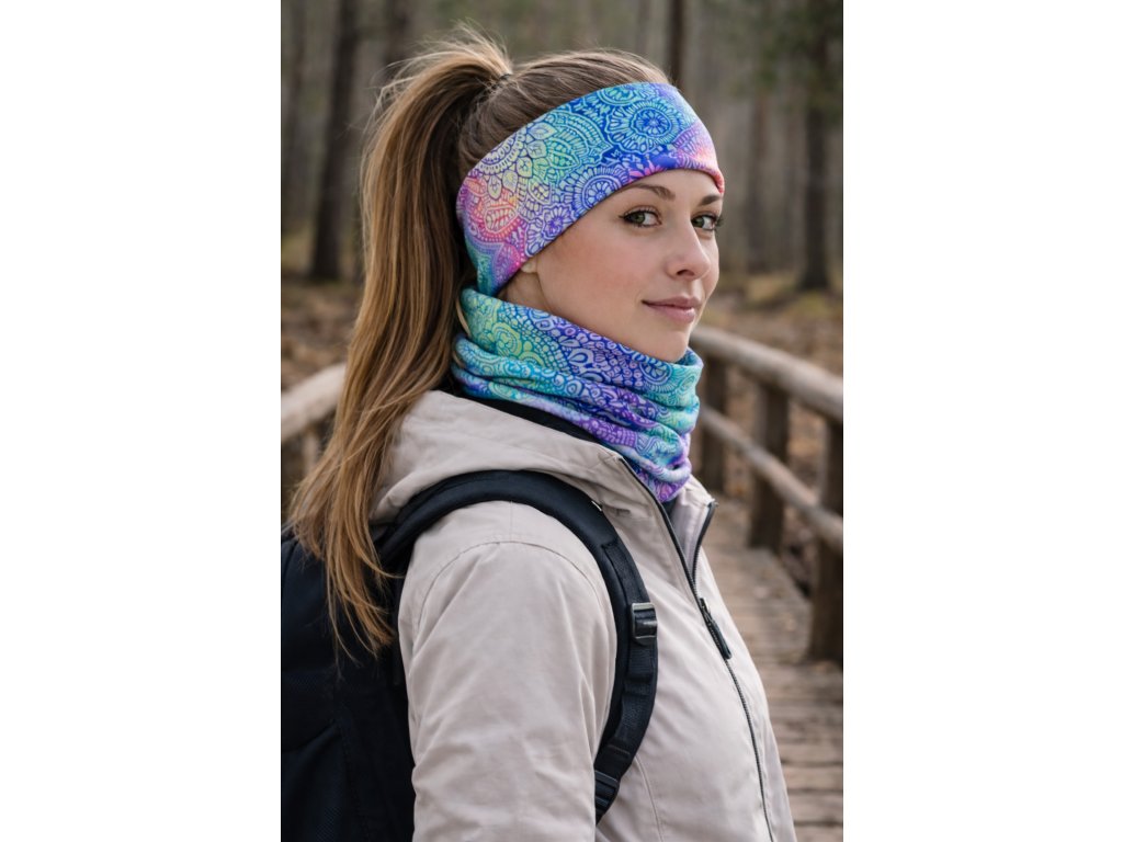 Sportovní čelenka a nákrčník DUHOVÉ MANDALY