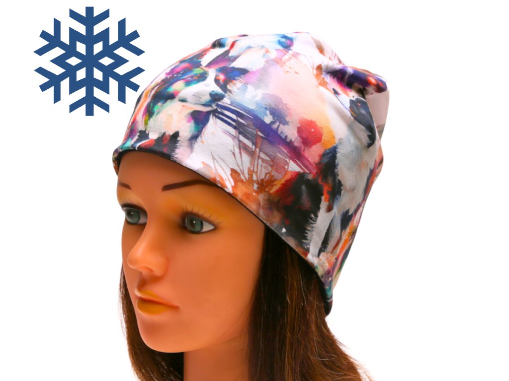 Zimní čepice s nádherným akvarelovým potiskem border kolií potěší všechny milovníky psů. Uvnitř má měkký černý fleece, který spolehlivě zahřeje i v mrazivých dnech. Dokonale padne a je ideální pro každodenní nošení.