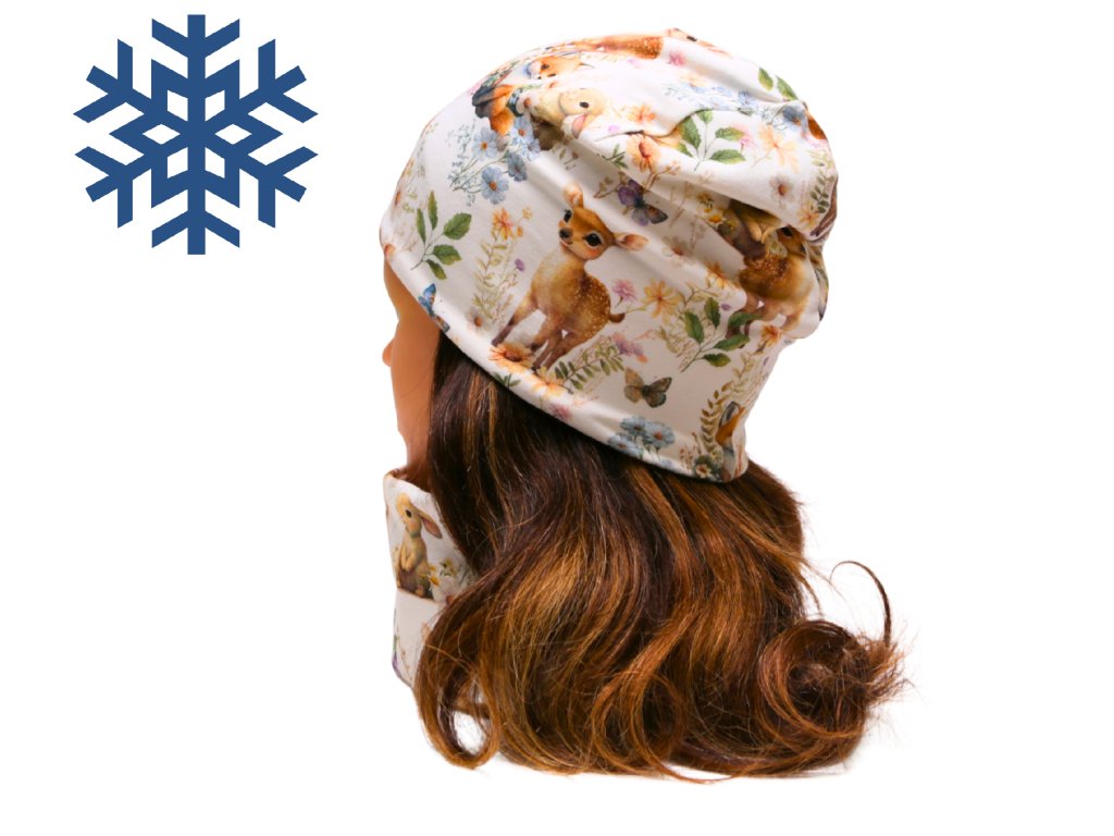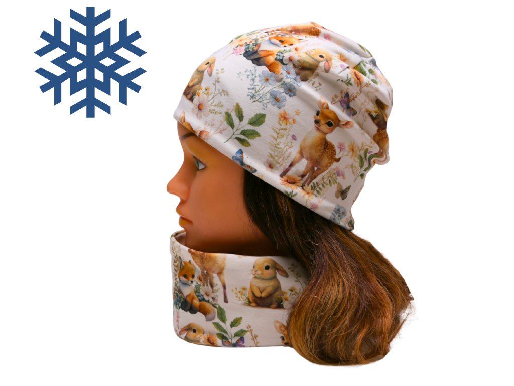 Výhodný zimní set – čepice + nákrčník s fleecem. Srnečci, lištičky a hřejivý komfort ❄️