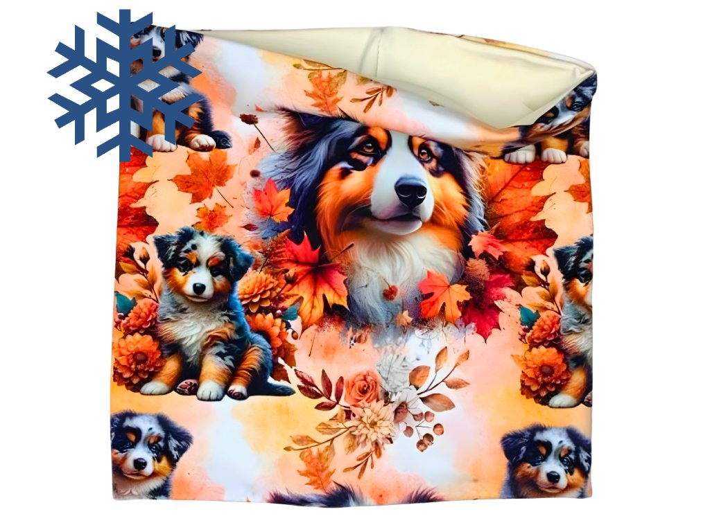 ZIMNÍ NÁKRČNÍK - AUSTRALSKÝ OVČÁK - fleecová krémová podšívka