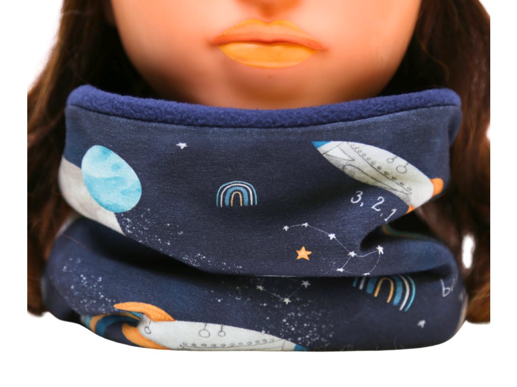 Hřejivý zimní nákrčník s motivem vesmíru je dokonalým doplňkem k čepici ze stejné kolekce. 🌠